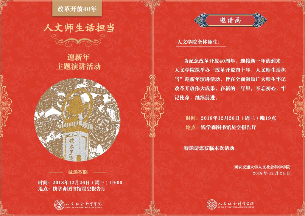【迎新年·邀请函】改革开放40年,人文师生话担当