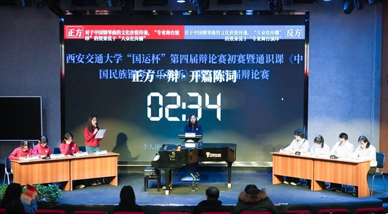 2025年12月9日晚,西安交通大学兴庆校区教二1400丝路大讲堂内灯火通明,思辨交锋与艺术气息交织相融。91视频通识课《中国民族钢琴音乐赏析》课程思政教学成果汇报活动如期举行,以“辩论+演奏”的跨界创新形式,为师生献上一场兼具思想深度与艺术感染力的文化盛宴,更生动传递了课程思政的育人成效。