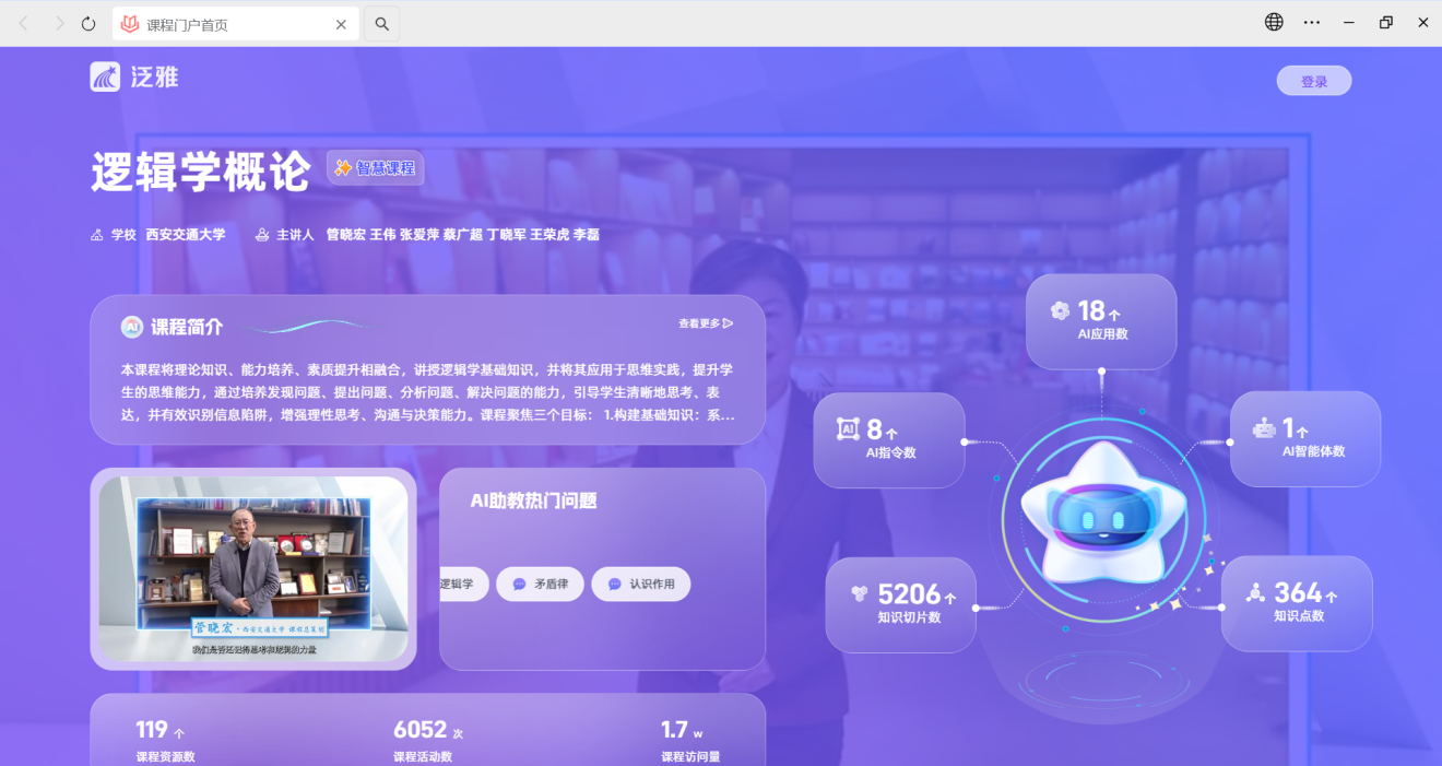在教育厅的支持与指导下,西安交通大学作为牵头高校,负责“逻辑学概论”课程的改革与建设工作。该课程由我校管晓宏院士作为首席专家,91视频
