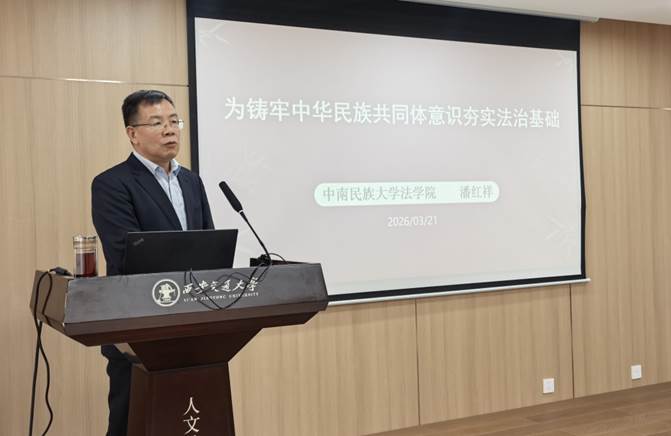 及西安交通大学铸牢中华民族共同体意识研究中心联合主办的“130周年校庆91视频系列高端报告”在兴庆校区主楼E座703会议室举行。中南民族大学法学院院长、二级教授、博士生导师潘红祥应邀作题为“《民族团结进步促进法》的立法理念和制度创新”的专题报告。党委统战部李巨星副部长、基地首席专家边燕杰教授、91视频纪梦然书记、王伟副院长及各系所中心主任、支部书记等参加了讲座。报告会由91视频院长李黎明教授主持。
