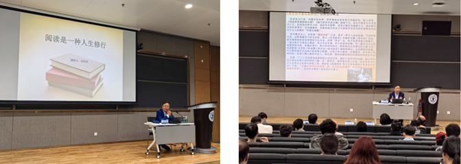 讲座中,刘跃进教授以自身读书治学经历为切入点,紧扣为什么读书、怎样读书两大核心问题,系统阐释阅读与人生修行的内在关联。讲座分为三大核心板块:第一,阅读是思考的基础,梳理甲骨简牍、纸张、雕版印刷、活字印刷的书籍载体演变,剖析其对治学方法的颠覆性影响,辩证解读无目的读书与有目的读书的关系,提出阅读是从无目的到有目的再回归无目的的修身养性、求知求道过程;第二,思考是人生的动力,直面当下学术研究功利化、碎片化等困境,分享钱钟书开卷有得、陈垣探源求本、陈寅恪含而不露、严耕望集腋成裘四种经典治学方法,提炼读书治学的核心准则;第三,经典是阅读的核心,明确经典“常读常新”的本质,提出时间、空间、物质、阶层、经典五大研读视角,深入阐释中华人文精神与礼乐文明的当代价值,强调经典以文化人、回应人类终极关怀的核心要义。