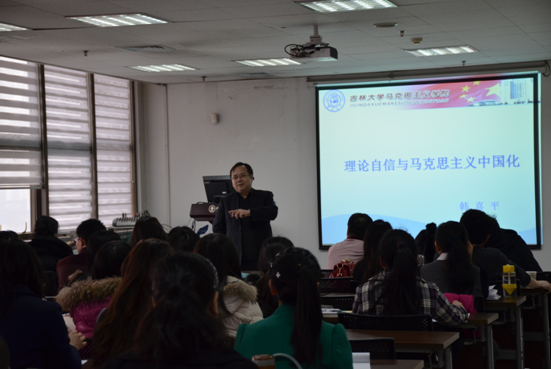 师生作了题为“理论自信与马克思主义中国化”的报告,他从“理论自信的来源与依据、理论自信面临的新挑战、马克思主义理论工作者的责任担当“三个方面进行了深入浅出的讲解,并为我们解答了关于社会主义本质任务、马克思主义理论与中国传统文化融合、当下思想政治理论课的时效性等问题,获得了热烈反响