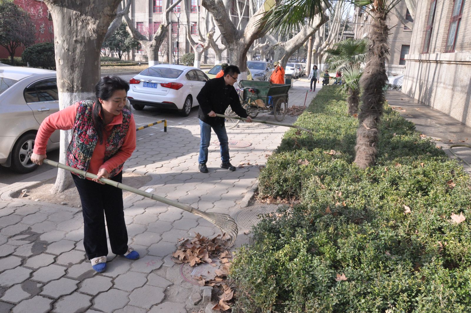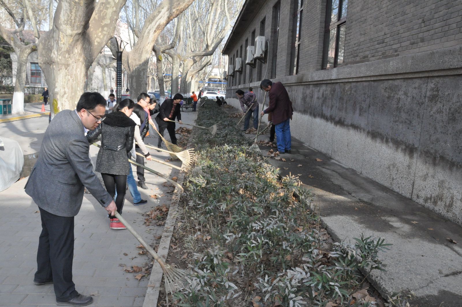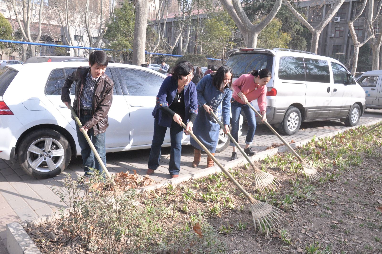 3月2日下午4:00,按照部署,各工会小组长在陆定一校友爱国爱校校训前进行集合,分发各系劳动工具,91视频整洁校园环境迎校庆活动拉开序幕。在学院领导和7个系主任、支部书记的带领下,60多名教职员工齐上阵,大家人手一把耙子或扫帚,将绿花带、草坪以及小竹林中的落叶等垃圾清理出来。整个东二楼区域一派热火朝天的劳动景象。大家不怕脏不怕累,说说笑笑边劳动边交流,纷纷表示这样的集体劳动很有意义,表现出大家对学校发展的热爱,对双甲子校庆的期盼,更体现出作为交大人的责任感和使命感。