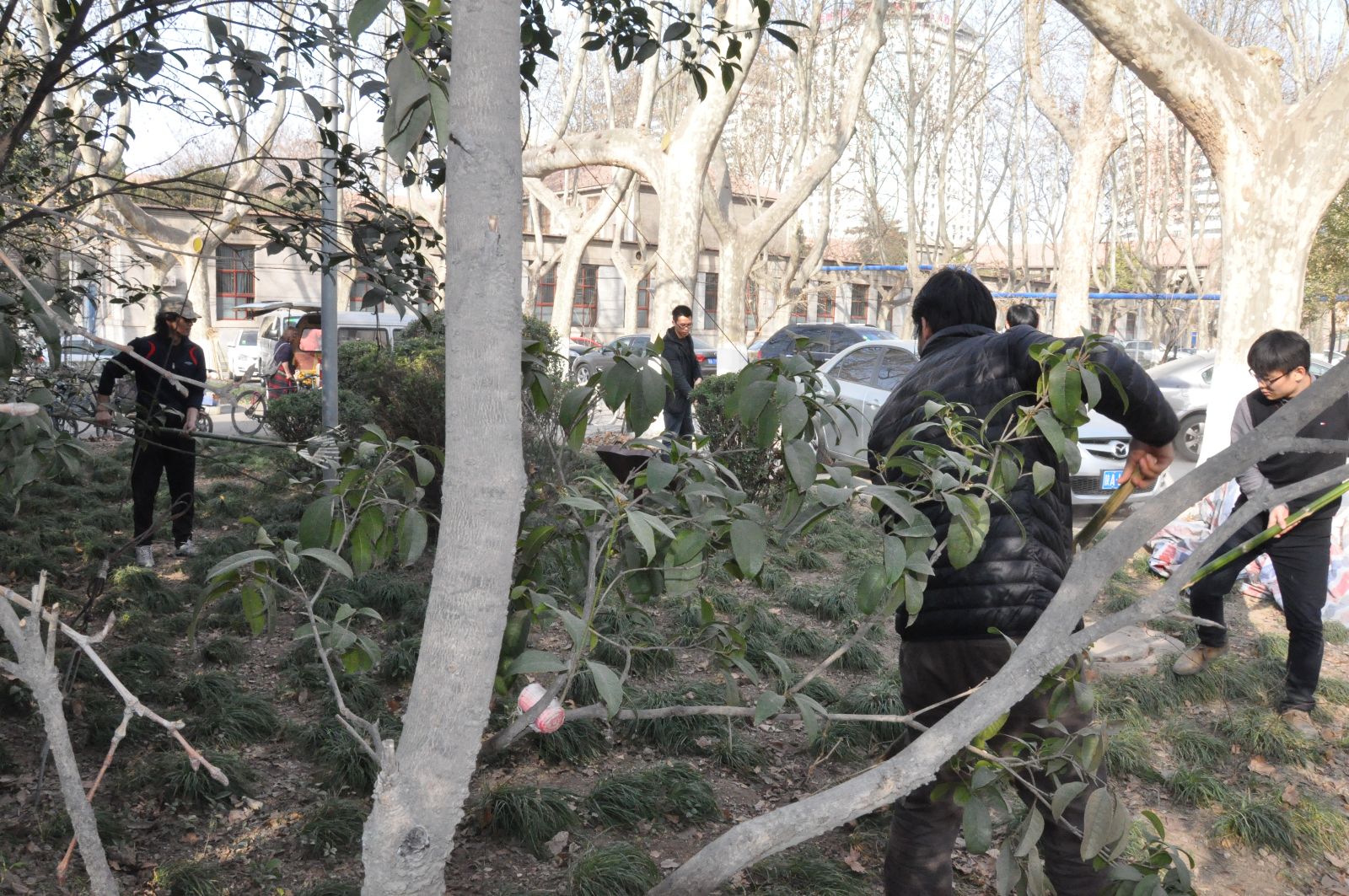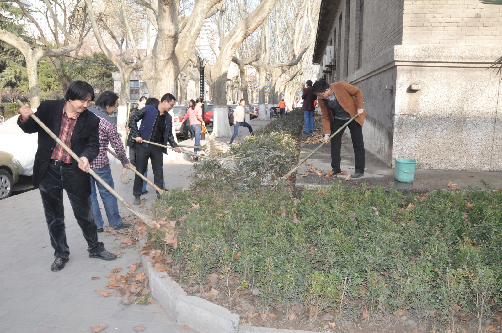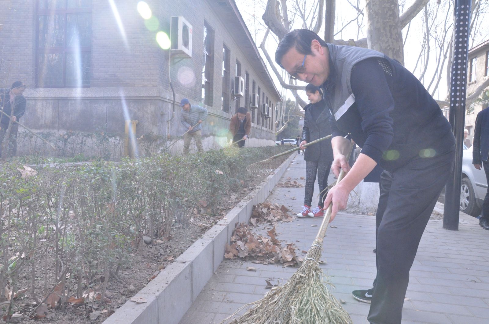 3月2日下午4:00,按照部署,各工会小组长在陆定一校友爱国爱校校训前进行集合,分发各系劳动工具,91视频整洁校园环境迎校庆活动拉开序幕。在学院领导和7个系主任、支部书记的带领下,60多名教职员工齐上阵,大家人手一把耙子或扫帚,将绿花带、草坪以及小竹林中的落叶等垃圾清理出来。整个东二楼区域一派热火朝天的劳动景象。大家不怕脏不怕累,说说笑笑边劳动边交流,纷纷表示这样的集体劳动很有意义,表现出大家对学校发展的热爱,对双甲子校庆的期盼,更体现出作为交大人的责任感和使命感。