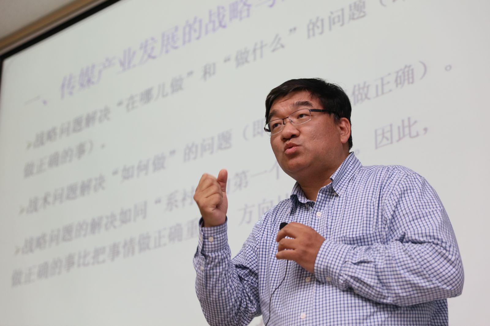 喻教授认为解决“做什么”的战略问题比“如何做”的战术问题更重要。互联网时代媒体转型的关键是对未来媒介技术发展清晰地了解与评估,在这一时代语境之下,遵循理性法则的大众传播时代进入到个体非理性情感传播兴起的传播时代。从这一逻辑出发,互联网就不应仅仅被看作是一个全新的传播工具,更应该体察到它是当今社会的一种操作系统、组织方式与结构方式。所以当下广泛提倡的媒介融合本身具有一定的偏差性:互联网本身就是社会的主体,因而在面对冲击之时,如何通过内容生产、价值实现、思维方式等方面的传统媒体转型才是可行之道。深刻地认知、遵循互联网逻辑,即从根本上体察互联网作为“高维媒介”,创造出全新的社会现实与市场现实。另外喻教授指出传统媒体的最大困境在于渠道失灵以及用户的流失。因此,互联网语境下的传媒转型首先应该具备吉登斯所说的面向未来的想象力,透彻地了解互联网思维,通过团队的集体创新真正的实现媒介转型,从而更好的掌握我国媒体的话语权和公信力。