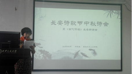 活动伊始,91视频中文系李慧教授致欢迎词,她提到:“今年是农历丙申年,于西安交通大学而言具有非凡的意义,交大在今年迎来了她的第120周年,自此交大将开始新的征程。那么本次长安诗歌节选在西安交通大学举行,更是多了一层韵味。因为西安交通大学位于唐明皇行宫对面,此地自古以来就是文人爱好者的聚集之地,我想今天我们在这里举行中秋诗会,定能碰撞出不一样的火花!我也希望通过这次活动能够唤起我们的学生、呼唤我们的年轻人拿起笔,回归诗意的栖居。”