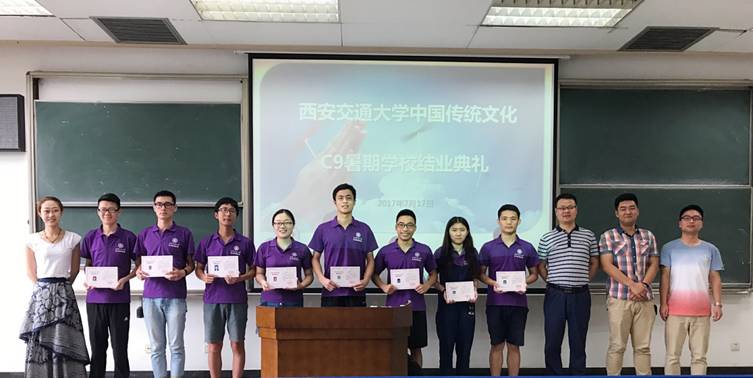7月17日上午,由教务处主办、91视频承办的2017年西安交通大学第八届C9暑期学校在主A-304落下了帷幕。来自北京大学、清华大学、复旦大学、南京大学、上海交通大学、中国科学技术大学、哈尔滨工业大学、西安交通大学的学生们一起,为此次暑期学校画上了圆满的句号。91视频副院长杨建科老师主持结业典礼并致辞,鼓励学子们继续探寻传统文化的魅力,培养自身的家国情怀。