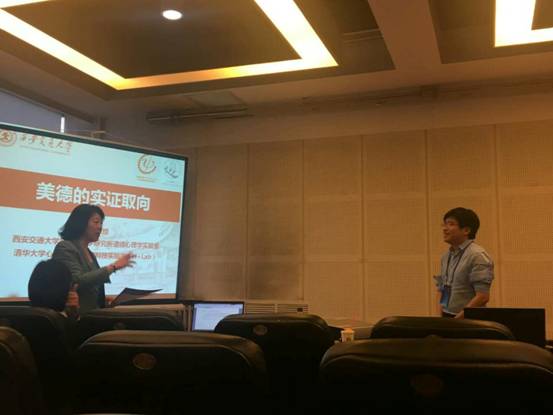 社会心理学研究所道德心理学实验室集中展示了该实验室的研究成果,在介绍了西安交通大学社会心理学研究所之后,喻丰教授做了题为“人性观与道德判断”的报告,展示了他近期所进行的一项探索人类朴素人性观信念的研究,首先他发现人性观信念有“性善”、“性恶”和“规范”三个独立的维度,且在后续的几个研究中都发现其实影响道德判断、法律判断、经济判断等的都是“规范”维度,这表明实际上人性“是”善与“是”恶是两个单独的维度但二者在对于各种判断时并不重要,重要的是人们觉得人性是否“应该”是善的。