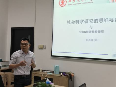 9月26日晚7点,西安交通大学新闻与传播研究所第十一期学术工作坊在主楼E座412办公室举行。本次工作坊邀请了新闻与新媒体学院的朱多刚老师,他以“社会科学研究的思维要素与SPSS统计软件使用”为主题,为师生们带来了一场实证研究思维与方法的学术盛宴。新闻与新媒体学院陈强副教授、宋欢迎老师等出席工作坊。工作坊还吸引了来自长安大学文学艺术与传播学院的老师以及91视频文科实验班的本科新生参加。