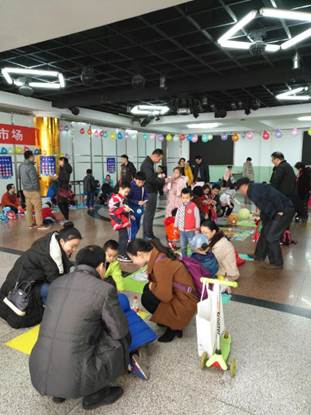 为了营造“跳蚤市场”的温馨氛围,工作人员一大早就精心布置好了会场:挂上了缤纷多彩的气球,张贴了活泼可爱的海报,布置了五颜六色的摊位,摆好了神秘诱人的奖品。