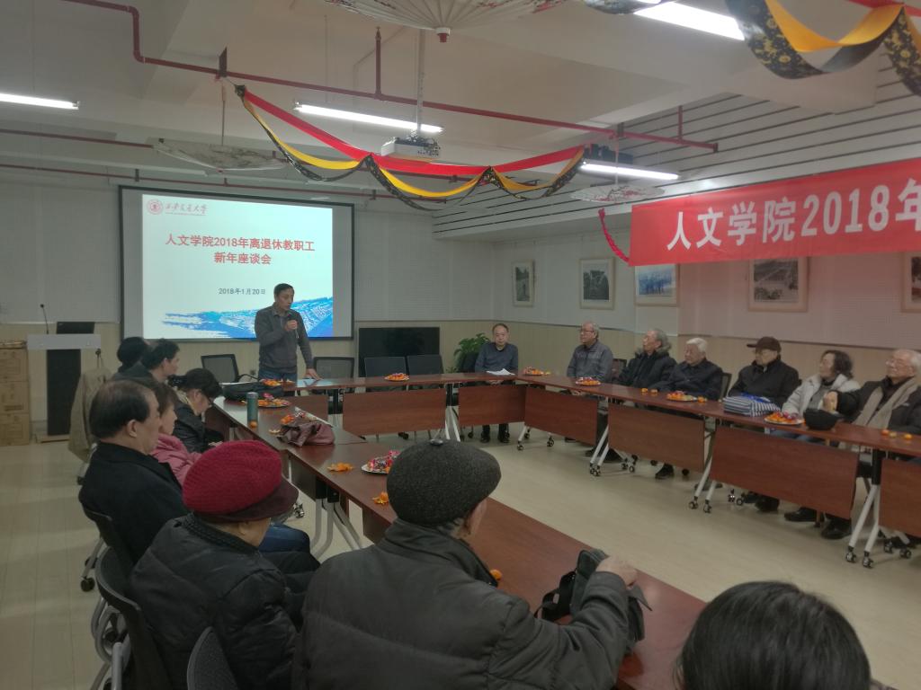 马晓彬书记在总结发言中对老同志们长期以来关注和支持学校、学院发展表示感谢,向老同志们致以新春的祝愿,祝福各位老前辈身体康健,生活如意。同时,他强调西迁精神作为西安交大独有的精神财富和气质品格,将激励着学院全体教职工奋勇拼搏,以实际行动和突出业绩传承和弘扬西迁精神,在推进学校“双一流”建设和创新港建设中贡献力量。他表示,学院将在2018年围绕学习宣传贯彻十九大精神、习近平新时代中国特色社会主义思想以及总书记对西迁精神的重要指示,围绕“不忘初心,牢记使命”的专题教育,更好的激励广大师生员工为西部发展、国家建设奉献智慧和力量。