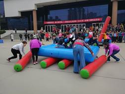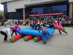 女教工们积极报名参加了此次庆祝活动,共有十多位女教工报名参加了此次庆祝活动。比赛开始前校党委常委、统战部部长张定红参加活动并致辞,校工会副主席张庆生主持开幕。为体现“团结、协作、奋斗、争先”的主题,此次运动会项目作了精心设计,准备了同舟共进、追赶超越、奋勇向前和团结一心四个项目。这些项目都需要参赛的团队人员之间要分工协作、密切配合才能顺利完成,每个项目既有技巧性同时又考验每个团队人员之间的相互协作性,虽然天气不太好,中间还有下小雨,但丝毫不影响大家参加比赛的兴趣和热情,整个比赛期间,91视频参赛的女老师们齐心协力、相互配合,共同顺利完成了所有的比赛项目,没有参赛的老师们在赛道旁加油、助威、呐喊,整个比赛的现场热闹非凡。在每一个比赛项目开始前,大家专注的相互讨论分析每一个项目完成的重点和难点,提前做好分工,虽然有个别女老师比赛时摔倒受伤,但依然不影响后续比赛的热情。比赛过程中,大家欢天喜地,加油声、呐喊声、欢笑声不绝于耳。中文系吴小侠老师说:“太有意思了!这是我过的最有意义的一个妇女节,和大家在一起好开心!”,艺术系的鲁鹏老师说:“太热闹啦,看着都开心!”,新来的王瑜萍老师说:“这个活动太好玩啦,我是第一次参加,以后我每年都要参加,太开心啦!通过比赛,加强了老师们的交流沟通,增进了彼此间的友谊,激发了大家以更加饱满的热情投入到学校各项教学科研管理工作中去。