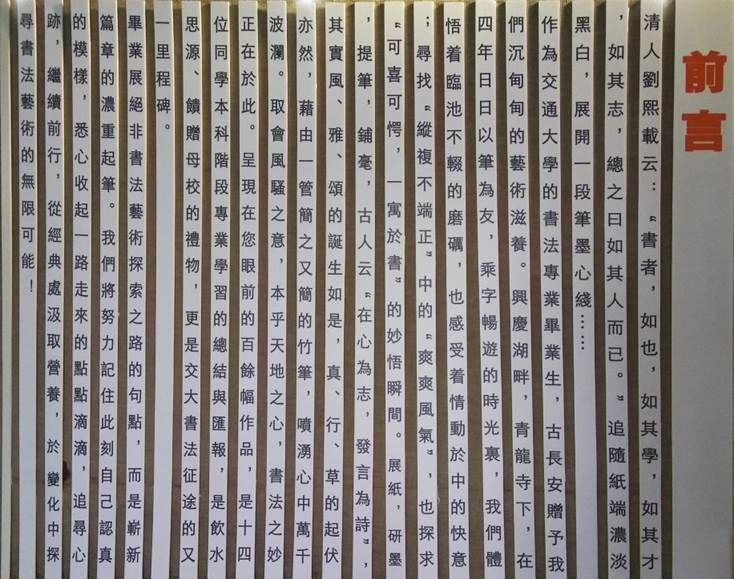 西安工业大学中国书法学院傅汝明教授在发言中表示,书法学习要坚持传统,在打好坚实基础的前提下发展个性。他肯定了西安交通大学在陕西省高校书法专业的龙头地位,并希望加强高校书法专业之间的校际交流和合作。随后傅汝明教授用启功先生的名言“入学初识门庭,毕业非同学成,涉世或始今日,立身却在生平”对交大同学表达了美好的祝愿。