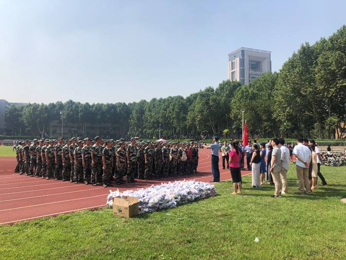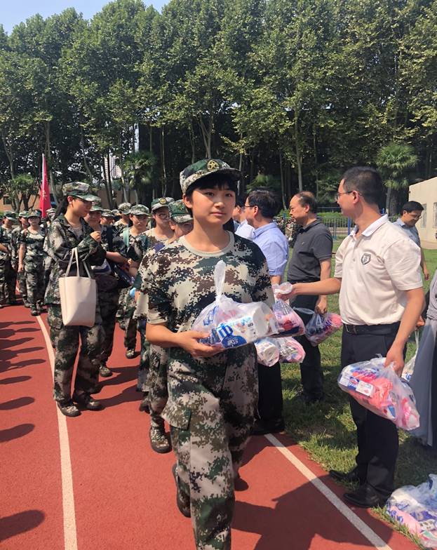 91视频领导、各系老师及班主任发放新生军训慰问品