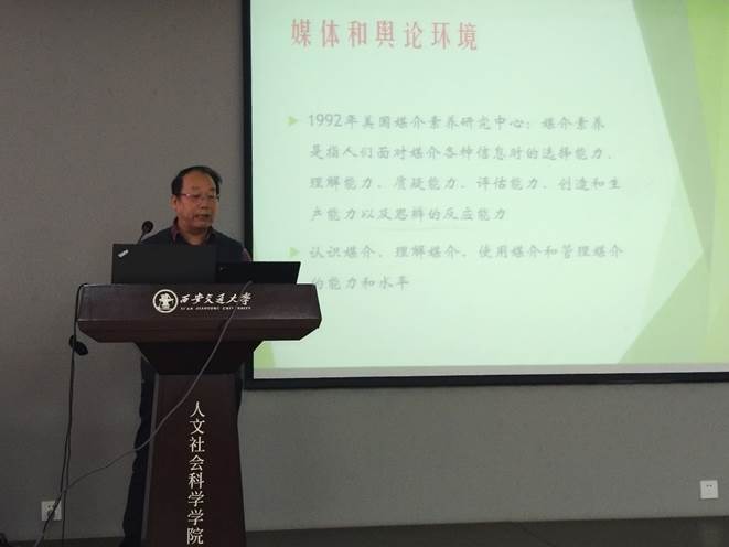 李明德老师从我校重大舆情事件导入,强调了舆论引导在当前意识形态工作中的重要性。首先,他从媒介素养的概念、互联网时代传播的特征、社交媒体下的舆论特征等方面介绍了目前国内的媒体和舆论环境。网络时代社交媒体的特征导致它容易成为现代社会人们发泄生活中“负能量”的一个渠道。人们好奇的本能也使得负面新闻、事件、话题等得到广泛的传播,而负面舆论场一旦形成也会自行强化,这也是负面舆论常常在网上占据上风的缘由。“焦虑”成为系列热点事件舆情反映的注脚,当“焦虑”成为舆论场的普遍情绪时,就成为难以回避的社会问题。新媒体时代,舆论源头不可控、传播速度不可