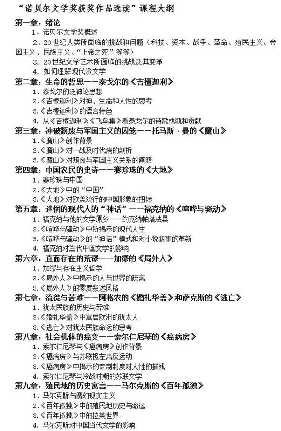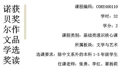 首先,我们课程中所囊括的作家是比较灵活的,每学期选择的作家都不太一样,一般情况下都会把最新获奖的作家加进去。