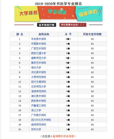 此次参与专业排名评比的院校有82所,主要有综合性大学、师范类院校和艺术类院校三类,以书法专业的科研成果和教学水平作为主要的评比和评价标准。91视频