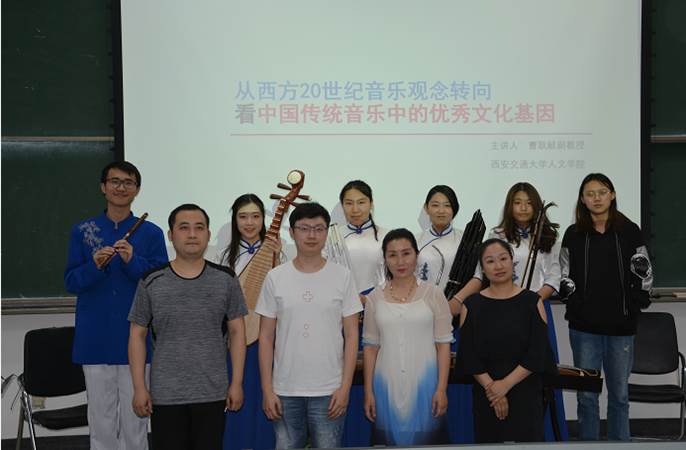 曹耿献副教授首先从西交大原党委书记潘季教授的一首《忆母校》歌词为开篇,引入20世纪初学堂乐歌等新音乐兴起的历史介绍,讲述了20世纪上半叶“西学东渐”和“五四运动”之后西方音乐对中国传统音乐的影响。