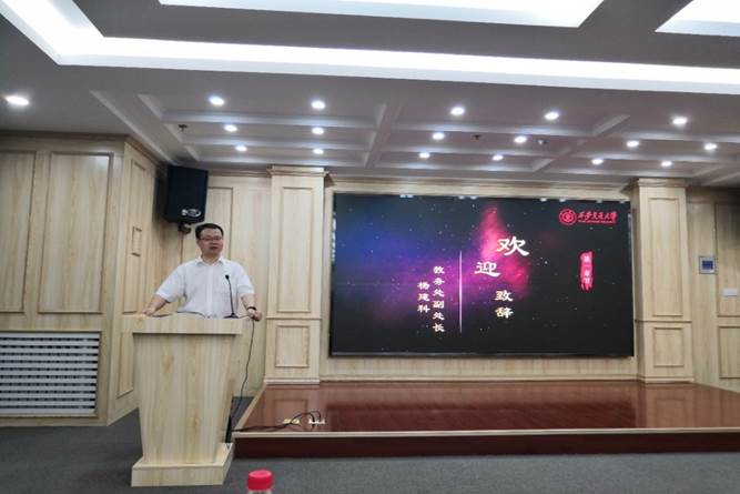 首先,教务处杨建科副处长致欢迎词。杨建科教授以幽默风趣的语言从国家大政方针、全球文化形势、习总书记的讲话入手,讲述了传统文化的重要性、交大开设中国传统文化暑期学校的重要意义以及西安这座城市得天独厚的传统文化氛围。最后,杨建科教授对同学们能在暑假时间选择来到西安、来到交大表示感谢,祝愿本次暑期学校圆满成功。