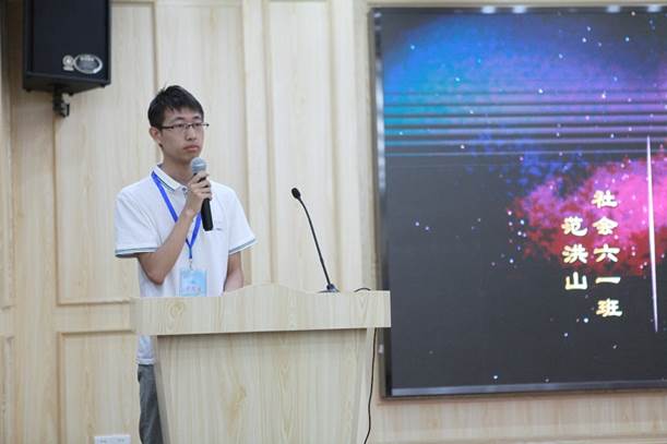 接下来是由91视频社会学61班长范洪山同学作为学生代表进行发言,他从西安的风俗文化,历史概况、交大的发展历史及交大西迁精神进行了宣传和讲解,以一个学生的角度再次欢迎暑期班可爱的小伙伴们来到交大。