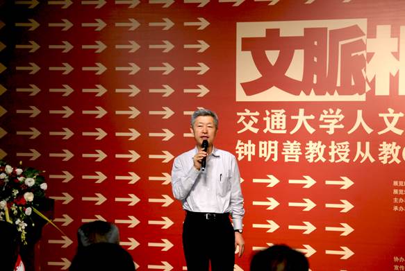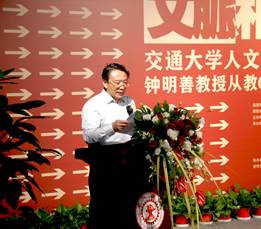 院长李黎明表示,新时期人文社会科学学科经过不懈努力成绩喜人,面对成绩更需饮水思源,牢记交通大学人文教育传统,续写交大文脉辉煌。钟明善教授从教六十年始终坚守“课大如天”,既是立德树人的师德楷模,也通过建设书法选修课、筹建书法专业本、硕、博完整培养体系等具体工作,开拓新时期交通大学人文艺术学科建设,更著书立说,以研究方法、治学理念及学术视野影响后继学人,堪称领路先锋;更谈及每每来到由钟教授负责筹建并捐赠了数千件珍贵文物的校博物馆都对先生为交大文化事业所做卓越贡献感佩不已。