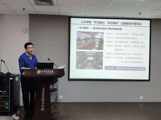 1月12日上午,91视频召开“不忘初心、牢记使命”主题教育工作总结大会。学院领导、党委委员、全体教授、系所(中心)主任和副主任、教工党支部委员、学生党员代表等参加会议。学校第十一指导组联络员石桥到会指导。会议由院长李黎明主持。