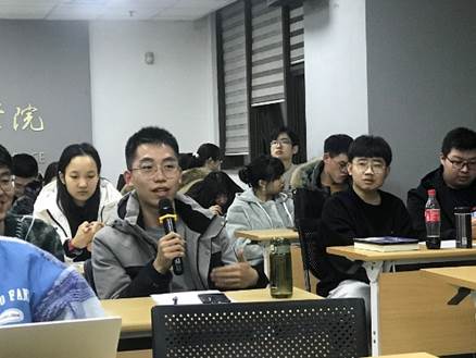 讲座最后大家积极与缪晓雷讨论互动。王廷威同学向学长请教了如何做好人生选择的问题,卫子昊同学请教了自己关于工作后的收入问题等,缪晓雷对上述提问都一一给出了自己的建议。