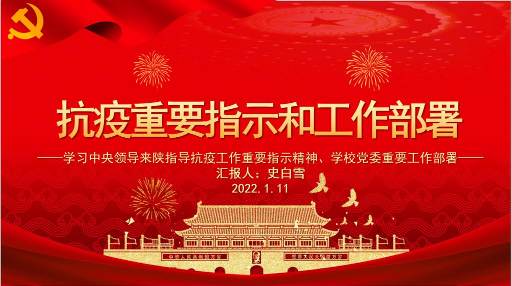 会议伊始,史白雪同志带领支部共同学习了中央领导来陕指导抗疫工作重要指示精神、学校党委重要工作部署。聚焦抗疫重要指示,支部共同阅读了《中共中央关于加强党的领导、为打赢疫情防控阻击战提供坚强政治保证的通知》,重温了学校召开的校疫情防控工作专题会议的指示,对打赢疫情防控阻击战的中央部署和学校政策都有了更深入的理解与把握。