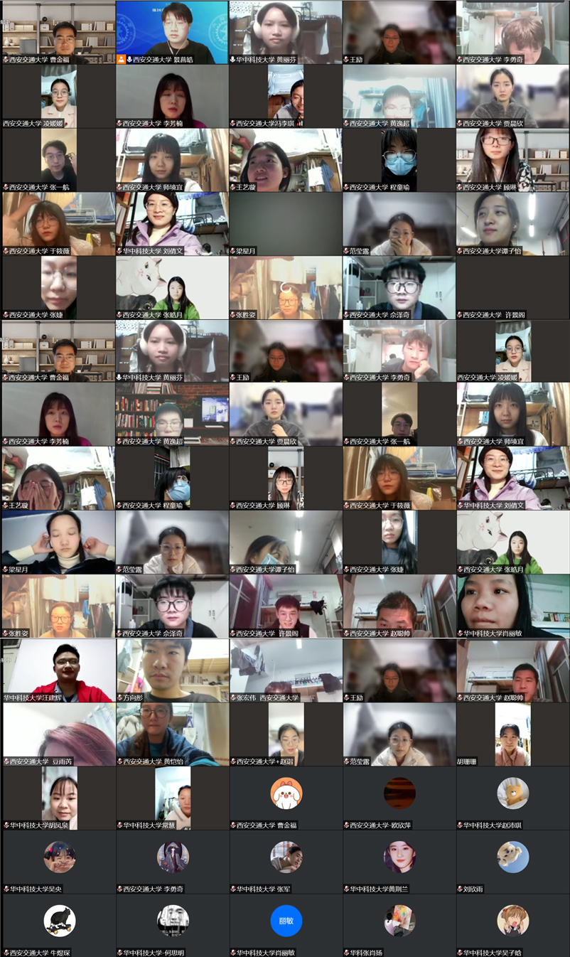 华中科技大学黄丽芬同志嘱咐交大人文学子在抗疫志愿中一定要做好防护、保护自身生命健康,并播放支部同志共同录制的祝福视频,视频中大家齐声说道:“西安必胜!中国必胜!”观看后,硕1103和1106支部同志纷纷表示备受鼓舞,并表达了对华中科技大学马克思主义学院2020级硕士生第二党支部的感谢。