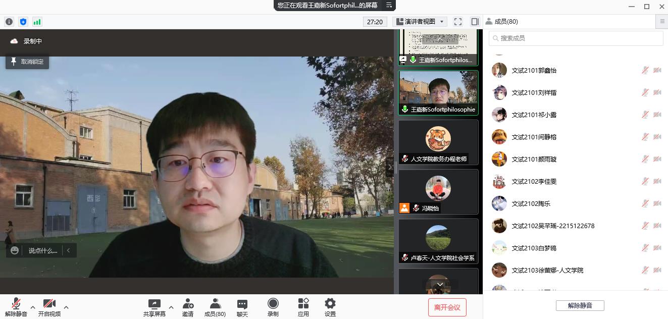 哲学系副主任王嘉新副教授重点介绍了哲学专业培养特色、学术研究成就、师资队伍、当前哲学理论前沿、教学科研团队、保研出国等内容。