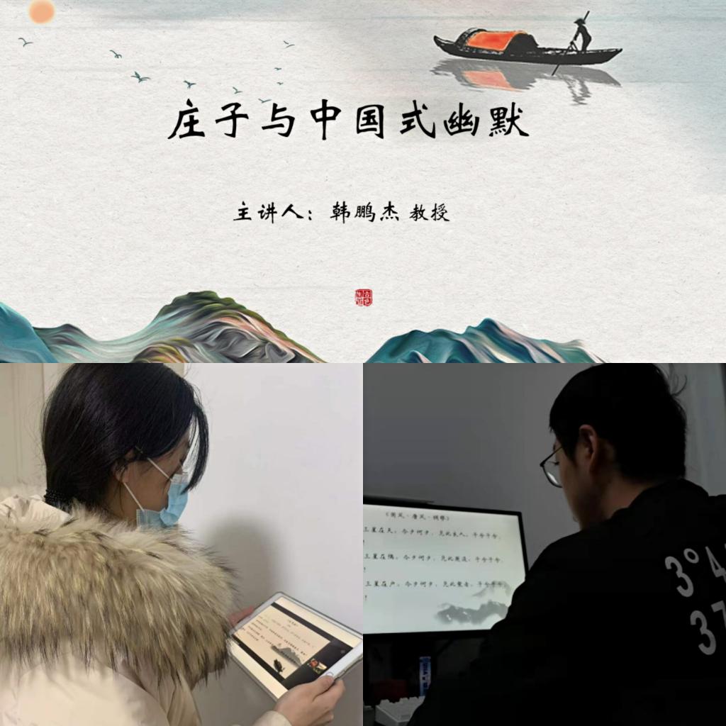 省级教学名师、哲学系韩鹏杰教授把“课堂”面向了全体师生。在新港名家论坛-新春专“线”系列报告中,作了题为“庄子与中国式幽默”的专题讲座。他以《庄子》文中“子非鱼”“蜩与学鸠”等故事展示庄子的幽默方式。以庄子为出发点,旁征博引,延伸到《诗经》和唐诗宋词,为师生展示了中国古代文人的幽默方式。通过先辈们的洒脱与幽默,为紧张的“抗疫”生活带来慰藉与欢欣。