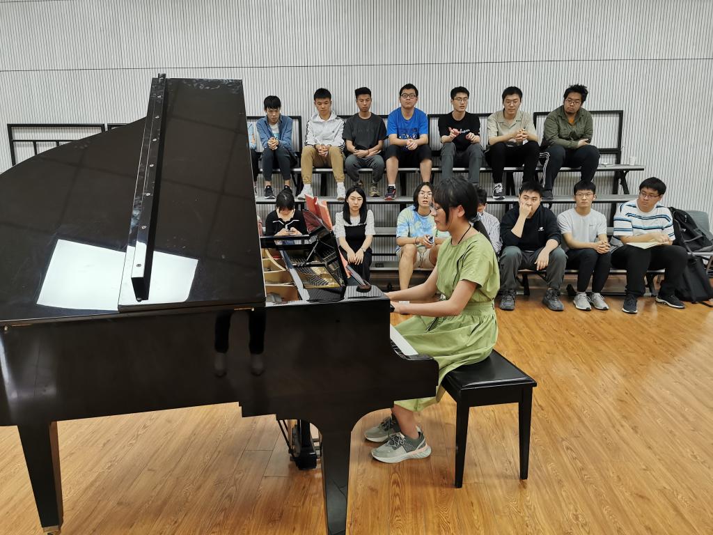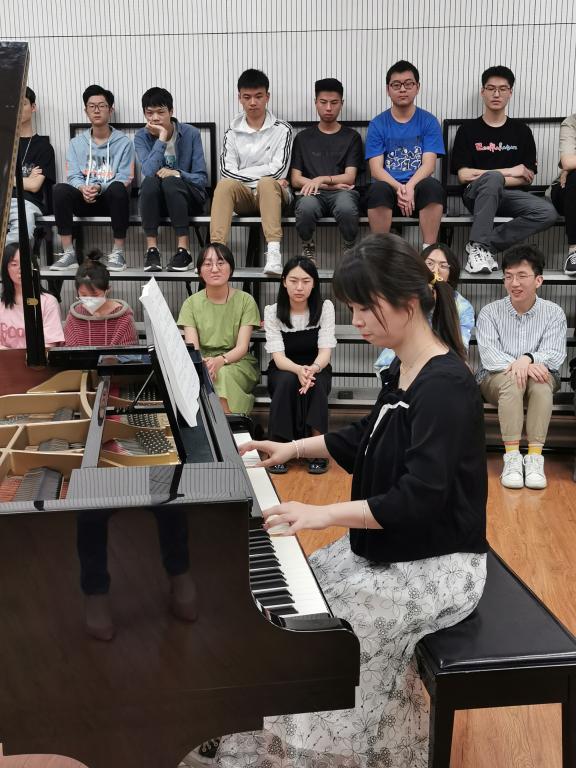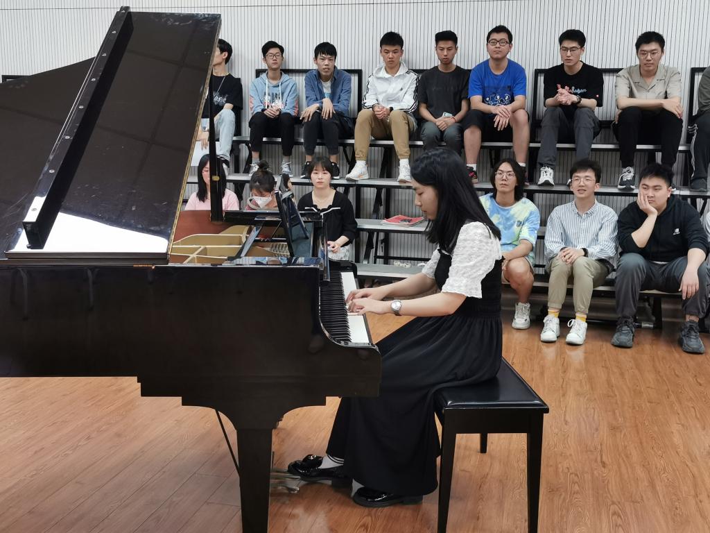 2022年4月25日下午四时,位于梧桐东道的东2楼上传来了阵阵悠扬的琴声,这是艺术类通识课《钢琴演奏表演艺术》中期汇报交流会正在举行。