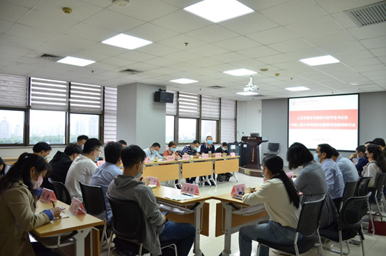 参会师生集体学习习近平总书记在中国人民大学考察时的重要讲话精神,结合学习和工作经历,畅谈学习体会。